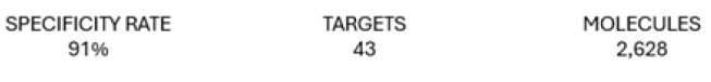 The metrics reported are based on data filtered within categories of commercial interest based on prospective work in risk assessment within. The data filters used in this challenge do not necessarily encompass the entirety of possible interactions within the human body or interactions outside of the scope of commercial interest. Future work will include broader and more diverse targets. GATC reports that the targets were selected for a particular research focus, and the proprietary methods used by the GATC System to achieve the reported specificity and sensitivity are not standard and may be considered trade secrets.