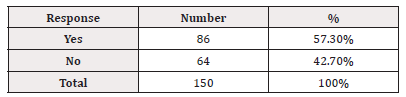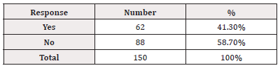 The total number of participants in this study was 150 individuals. The majority (83) were females (55.3%) as shown in Table 1. 36% of respondents were in the age group (15-30) and 34.7% were in the age group (31-45). Most of the respondents were students and free workers, 34.7 % and 25.3 % respectively. 32.7 % of the participants were educated till secondary school. Most of the participants didn’t experience sudden loss of consciousness, only 12.7 % did, from those only 11.3% had lost connection with their surrounding once before. 93.3 % of participants hadn’t lose bladder and bowel control. Only 8.7 % of participants think they had faced some sort of magic before. Only 12.0 % of the participants had experienced transient seizure.