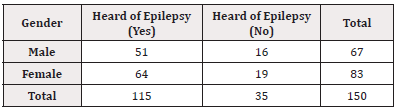Cross-tabulation of Gender and Knowledge of Epilepsy shown in Table 5.
