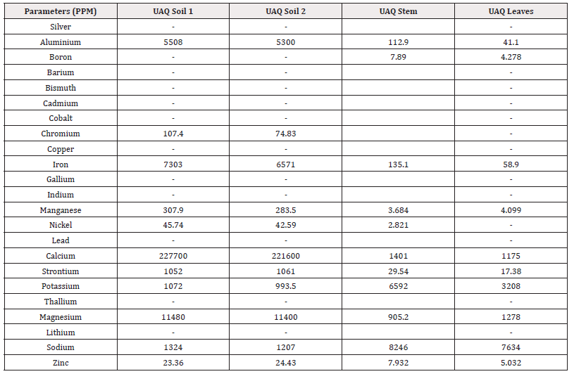 Extraction Coefficient Factor (EF): It evaluates the ability of the plant to accumulate heavy metals in shoot biomass [36] and extraction coefficient more than 1 is one of the criteria for identifying hyperaccumulator plants [41]. According to our research findings, in case of Ras Al Khaimah mangrove sample, K1.827 showed highest extraction coefficient and Na0.3102 second highest. However, in case of UAQ mangrove plant sample Na6.228 showed the highest extraction coefficient then K6.149 and then Zn0.339 respectively (Table 5).
