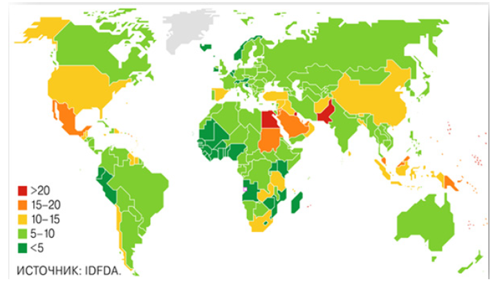 According to the information of the International Diabetes Federation as of January 1, 2018, the number of diabetes patients aged 20-79 in the world exceeded 425 million, including type 2 diabetes and gestational diabetes. However, these data do not accurately estimate the actual number of patients, as they only take into account identified and reported cases of the disease. Thus, the results of a large-scale epidemiological study confirm that only 54% of type 2 diabetes is diagnosed in routine clinical practice, and in 46% of patients, diabetes is detected only through active screening. Impaired insulin secretion and insulin resistance are considered the main pathogenetic mechanisms, but the number of new defects that cause chronic hyperglycemia in type 2 diabetes is constantly increasing. The FDA has studied the prevalence of diabetes between the ages of 20 and 79 in the world and has come to the following conclusion It is a pandemic with an exponential increase in incidence: in 2021, the number of people with diabetes was 537 million (International Diabetes Federation, Diabetes Atlas, 10th edition), and by 2045 this figure is estimated to reach 783 million. https://servier.ru/stati/saharnyiy-diabet-2-tipa-bolezn-obraza-zhizni (Figure 1).