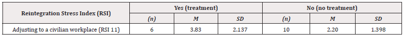 Table 11: Means and Standard Deviation of the effect of Participant Mental Health Treatment and Reintegration Stress.