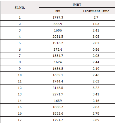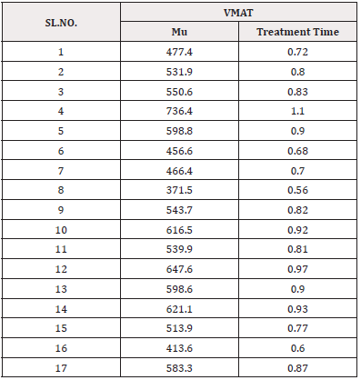 2. Patient treated on Halcyon Varian machine were observed who underwent IMRT and VMAT in aspect of no MUs used and their treatment time (Table 2,3).