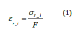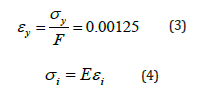 If εi is computed greater than or equal to the yield strain, εy, then the fiber has yielded, and the stress in the fiber, σi, is equal to the yield stress. The yield strain is computed in Equation 3. If the strain is less than the yield strain, then the fiber is behaving elastically, and the stress is computed using Equation 4.