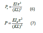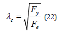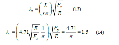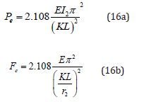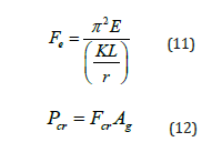 The elastic buckling stress, Fe, from Equations 9 and Equation 10 is computed using Equation 11 and the critical buckling load is computed using Equation 12.