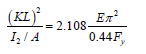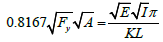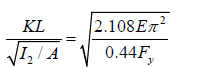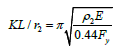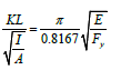 The expression to the right is assumed to be the slenderness limit that separates between elastic and inelastic buckling of the tapered member. Assuming that the yield stress of the member is 36 ksi, the limit is: