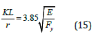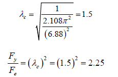 Simplifying Equation 24, the slenderness parameter that separates elastic and inelastic buckling is obtained. Also, the ratio Fy/Fe is obtained.