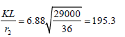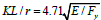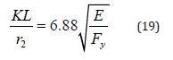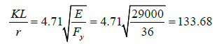 The slenderness ratio limit, KL/r, which determines whether this cross-section fails by elastic or inelastic buckling for a yield stress of 36 ksi is calculated as follows:
