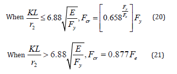 Equations 20 and 21 represent the modified AISC equations for the tapered member in question. In general, the modified equations are very similar to Equations E3-2 and E3-3 in AISC (2010). The primary differences are; [1] the limit that determines which equations to use, [2] the calculation of Fe, and [3] using the radius of gyration at the smaller member end only, r2.