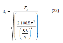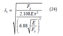 To determine the compressive capacity of tapered columns, the following modified equations are recommended for a tapering ratio u = 2 and with a built-up cross-section. More modified equations are required for other cross-sections and other tapering ratios.