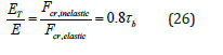 Yura (Yura 1971) [9] derived a stiffness reduction factor for prismatic columns when differentiating between elastic and inelastic buckling. The author assumed that the stiffness of the column in the inelastic range can be taken as proportional to a reduced stiffness, ETI, where ET is the tangent modulus. Yura indicated that the ratio of the inelastic critical buckling stress, Fcr,inelastic, to the elastic critical buckling stress, Fcr,inelastic, is equivalent to the ratio of the tangent modulus to the elastic modulus. These relationships were used to determine a stiffness reduction factor. Due to the elastic and inelastic behavior, an adjustment in the design criterion of the prismatic column was applied using this study. When the slenderness ratio indicates that the column should fail by inelastic column buckling, the relative stiffness ratio, Gelastic, is multiplied by the stiffness reduction factor,ET/E,