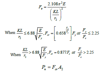The elastic buckling stress, Fe, from Equations 20 and Equation 21 is computed using Equation 16b. The critical buckling load is computed using Equation 25.