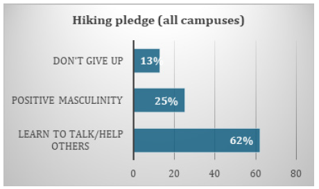 The mental health component of the programme was activity tackled using various instruments of wellness, including dialogue and recreational sport. Hiking was ranked by students as the most enjoyed recreational activity. During this activity, a hiking pledge was taken: ‘I will not suffer in silence; I will tell my story.’ This pledge was for all students to commit to seeking help as and when they require it, from the available services offered by the institution, to counter mental health challenges. The hiking pledge used the physical exercise of hiking as a tool to inspire inward-looking and interpersonal change. This activity was underpinned by a pledge for men not to suffer in silence but rather to open up and share their stories. The hiking component of the programme exposed young men to a challenging mountain trail that required teamwork, vulnerability, support and tenacity for the summit. Students demonstrated a strong drive to see their hike through despite the low morning temperature on the way up, and the increasing heat upon their return. After climbing the mountain, participants were divided into commissions to discuss symbolic lessons learnt from the hike, social issues such as gender-based violence, personal struggles like self-esteem, academic inspiration, leadership virtues, relationships and related heartbreak, mental health and more.