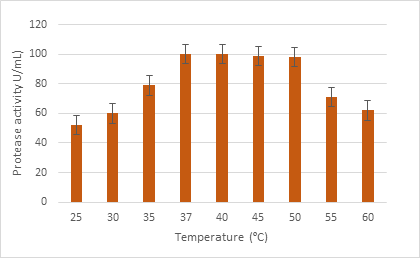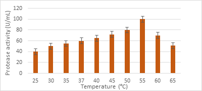 Temperature Optima: The influence of temperature on the activity of the bromelain enzyme was determined at various temperature intervals (25-65°C).
