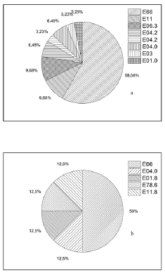 It is known that the specified class of diseases includes not only endocrine pathology but also nutritional disorders and metabolic disturbances. The analysis showed that the distribution of different types of pathology between the two groups differs (Figures. 3a and 3b). However, it can be noted that in both cases, a significant proportion of diseases are associated with metabolic disorders, i.e., obesity (E66). It can be assumed that the latter group of pathologies may not be related to the effect of the radiation factor. This is supported by literature data indicating uncertainty regarding the effect, i.e., whether the influence of thyroid hormones on the obesity process is dominant or, conversely, obesity affects thyroid functions [6]. In our previous studies, we hypothesized the role of thyroid hormone imbalance in the development of pathology depending on the activity of certain genes expression in thyrocytes. However, the consistent effect of obesity dominance in the morbidity structure is unlikely to be linked to the radiation factor. Nevertheless, it can be expected that this pathology may make its own contribution to the morbidity structure of the cohort. In this regard, at the next stage of the work, we analyzed the cumulative incidence in both groups of women without accounting for the contribution of obesity (Figure 4).