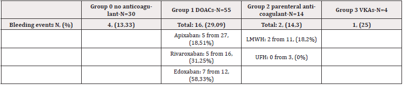 Table 4: Comparison regarding bleeding events between different groups of anticoagulants with a calculated p-value.