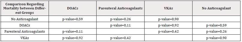 Mortality Rate Among the Four Anticoagulant Groups is Present in Figure 7.