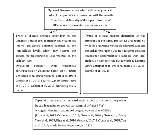 To explain above statements more clearly, let us first comprehend the results of this investigation represented above. In the process of investigation of the global problem implied by the disease, defined should be the most important issues, which influence the treatment processes (and, in this connection, define possible healthcare approaches): patterns of a definite disease, which are normally conditioned by the biological underground, first of all, by the types of disease sources, which determine practical tasks of the specialists in connection with the disease problem, i.e. define the most perfect forms of analyses, application of contemporary medication, advanced treatment methods, etc.