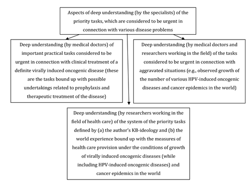 Figure 5: Aspects of deep understanding (by the specialists) of important practical tasks, which are considered to be urgent in connection with the disease and epidemic situations in the world. These are the tasks, which necessitate urgent health care undertakings.