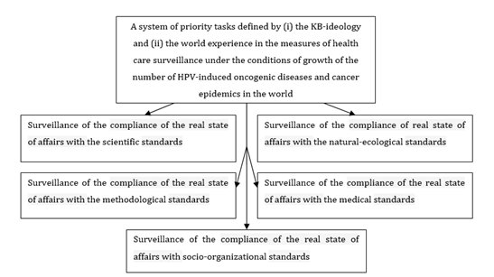Formulation of a system of priority tasks (i) defined by the KB-ideology and (ii) bound up with the world experience in the measures of health surveillance under the conditions of growth of the number of diseases and epidemics in the world.