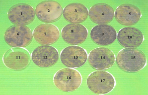 Using the soil dilution technique micro-organisms [3] were screened on PDABM poured in sterile petri plates. Microorganisms appeared on the above medium on incubation at room temperature. Based on the appearance and colony development, desired organisms were detected and isolated. These organisms which grew in PDABM medium were further screened on higher concentrations (20g.) of bug macerate medium to confirm their stability of rapid colonisation and competency to grow over PDABM medium. Streptomycin Sulphate, 200 ppm., was added to the media after autoclaving. This is a broad-spectrum antibiotic and so it helps to prevent the growth of bacterial colonies and in the process allow fungal colonies to grow and develop without inhibition.