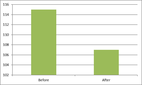 Graph 2: Average total cholesterol values (mg/dl) before and after the exclusion of carbohydrates derived from wheat.