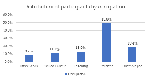The demographic characteristics of the study participants were systematically analysed, focusing on gender, age, educational level, educational attainment, and nature of occupation. A total of 207 individuals participated in the survey, providing a robust dataset for evaluation. Of the respondents, a significant majority were female, comprising 76.8% (n=159) of the total sample. In contrast, male participants accounted for 23.2% (n=48). This gender distribution highlights a notable imbalance, which may influence the findings related to sleep patterns and circadian rhythms.