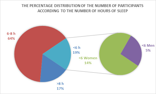 Figure 6: The percentage distribution of the number of participants according to the number of hours of sleep.