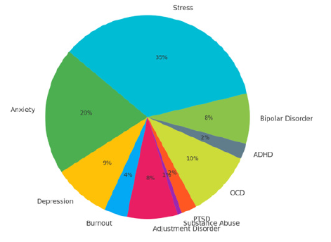 a. Stress and Anxiety were the most dominant conditions across both genders.