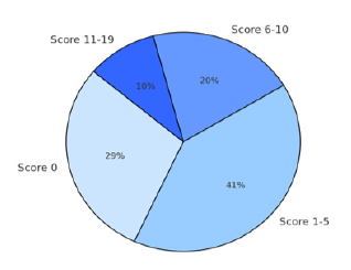 a. The majority of participants fell into the score ranges of 1-5 (41%) and 6-10 (20%), indicating mild to moderate mental health concerns. This highlights a population that may require preventive mental health strategies [25,26].