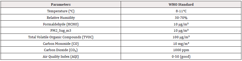 Volatile Organic Compounds (VOCs) are organic chemicals that can have both short- and long-term health effects, such as eye, nose, and throat irritation, headaches, and damage to the liver, kidneys, and central nervous system. They come from sources such as paints, solvents, and cleaning products [8]. Carbon monoxide (CO2) is a toxic gas that can cause headaches, dizziness, and nausea. The incomplete combustion of fossil fuels in vehicles and generators used in abattoir operations can release Carbon Monoxide (CO). CO is a toxic gas that can cause headaches, dizziness, and nausea upon inhalation [9]. Exposure to these air pollutants can have various health effects, including respiratory and cardiovascular problems, neurological and developmental problems, and an increased risk of cancer. It is crucial to Monitor and regulate air pollutants to safeguard human health and protect the environment [7]. This involves the collection of air quality data through monitoring stations and the establishment of air quality standards and guidelines by regulatory agencies. These standards and guidelines help to limit the concentration of pollutants in the air and minimize their adverse effects on human health and the environment [9].