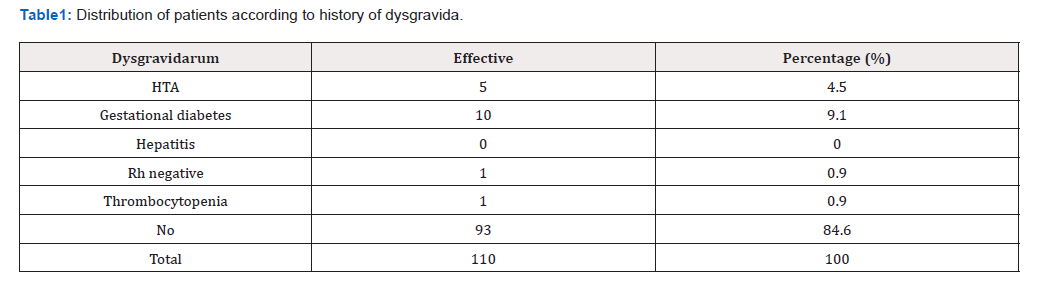 For contraception before current pregnancy, 56.3% of patients, did not use contraception before this pregnancy, 18.2% were on progestin-only pills. According to a study carried out in 2015 by Hesse on the contraceptive choices and practices of women who gave birth at the Nancy Regional Maternity Hospital, the pill was the contraception of choice before pregnancy for 65% of the population surveyed compared to 4% of patients who were without contraception [10]. Indeed, according to the results of the MICS 7 survey, 69% of Tunisian women use modern methods of contraception. According to Thaxton et al, it is strongly recommended that providers giving prenatal care use this opportunity to discuss complex issues, including desired family size and spacing, and present contraceptive tools to achieve these goals while assessing patient priorities as well as medical risks and contraindications [12].