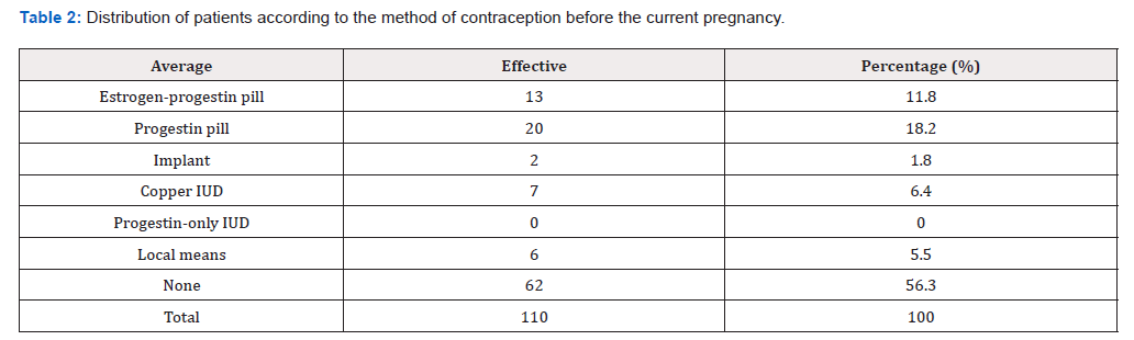 Table 2: Distribution of patients according to the method of contraception before the current pregnancy.