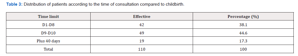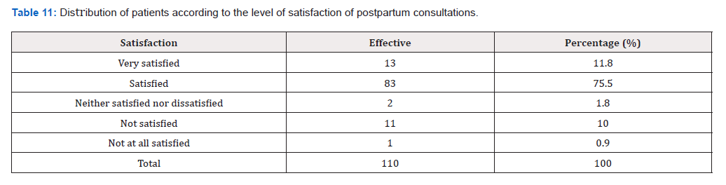 Table 4: Distribution of patients according to the interest of the post-consultation partum (N=110).