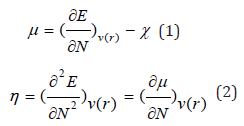 The reactivity indexes for a system of N-electrons with total energy E and external potential V(r) are defined as the first and second derivative of E regarding N with the following expressions [29]:
